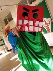 1月という事で、図工の時間に獅子を作った。獅子舞で遊ぶことを目標に。