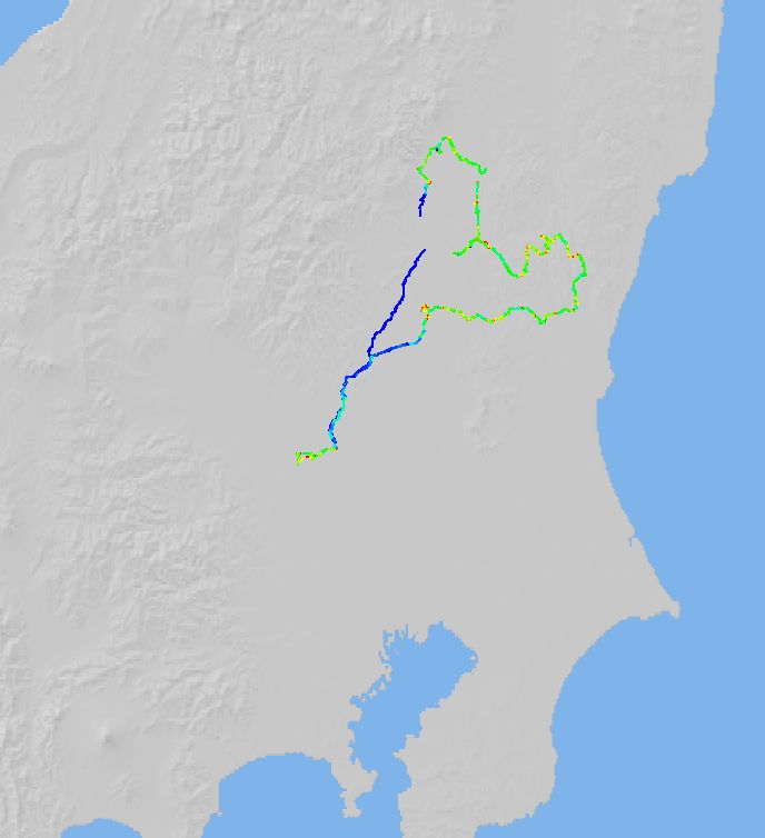 色は速度と対応していて、赤<低 速度 高>青 で虹と同じ。